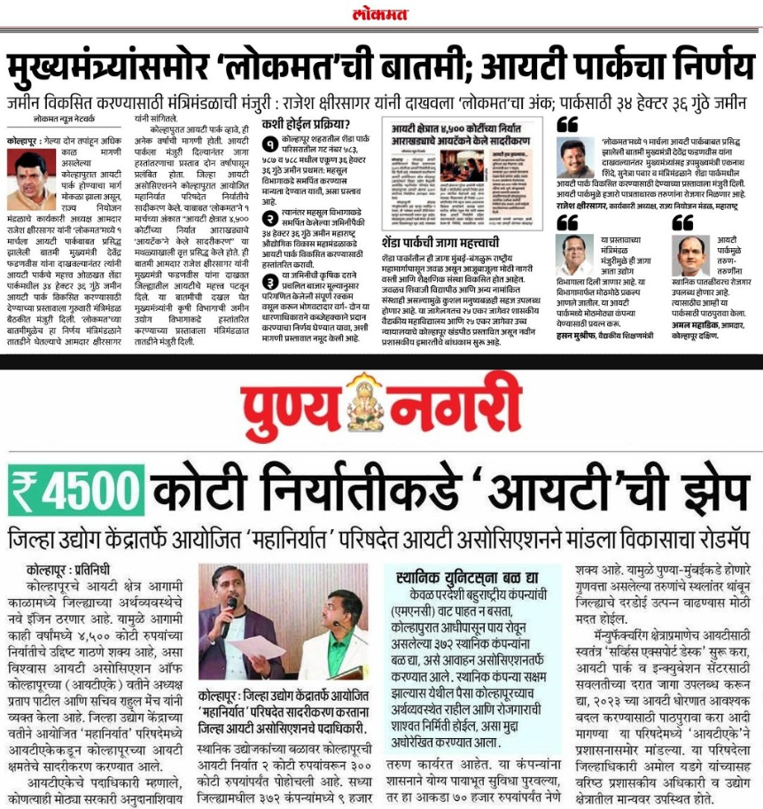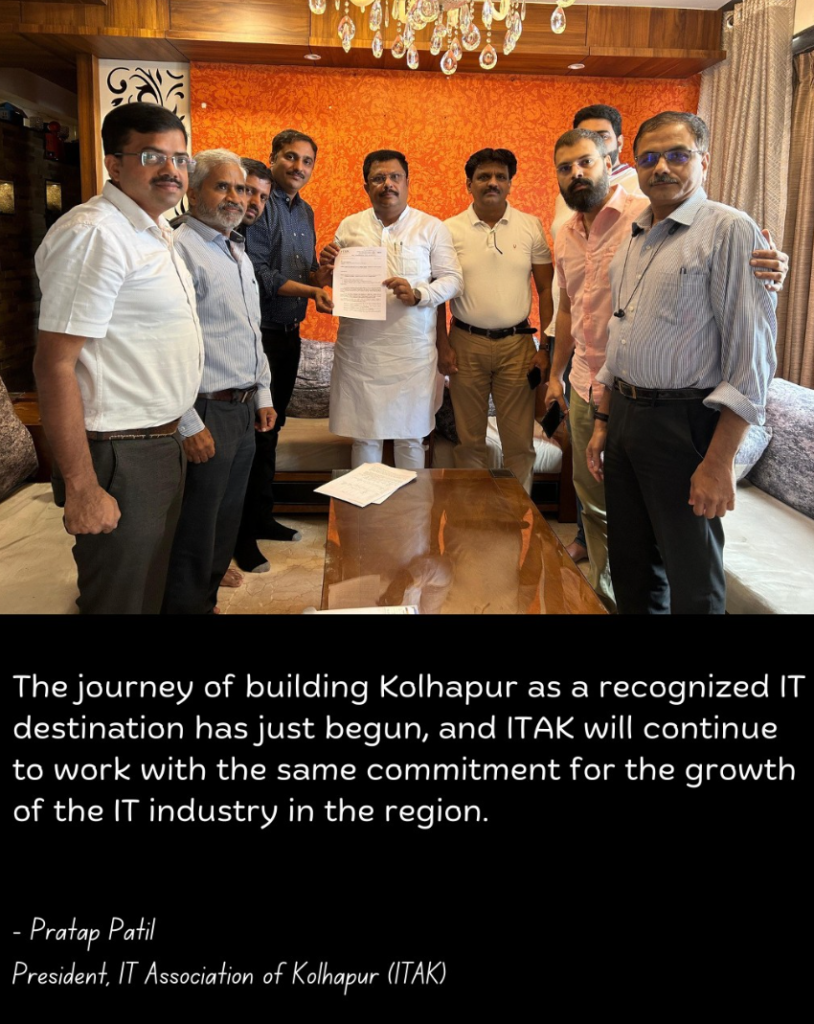 At this stage, we strongly advocate that local IT companies be given priority in the upcoming IT Park, allowing the city’s existing talent and entrepreneurial spirit to flourish. We also call upon the industry, educational institutions, and business community to support local IT initiatives and ITAK’s efforts to build a robust and sustainable technology ecosystem in Kolhapur.